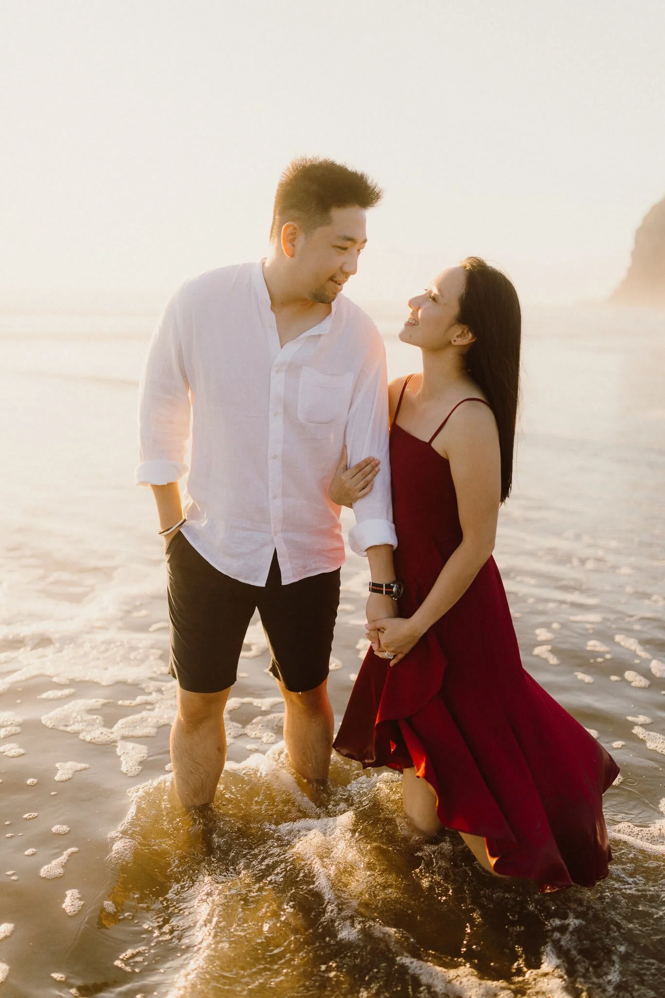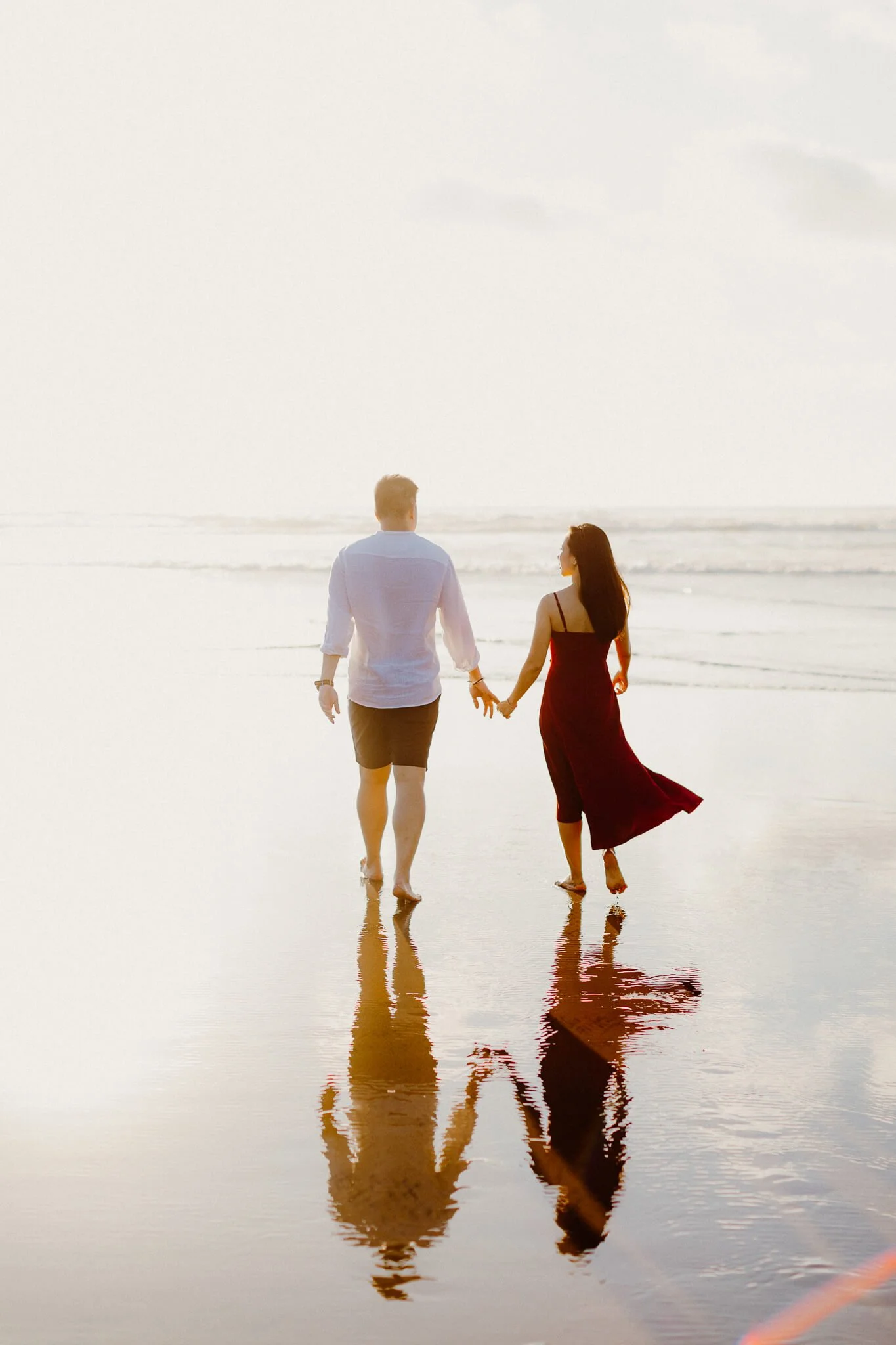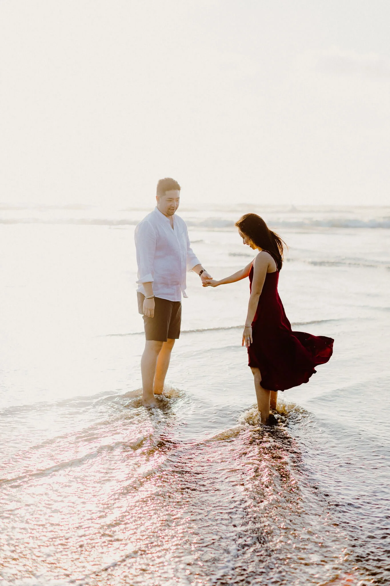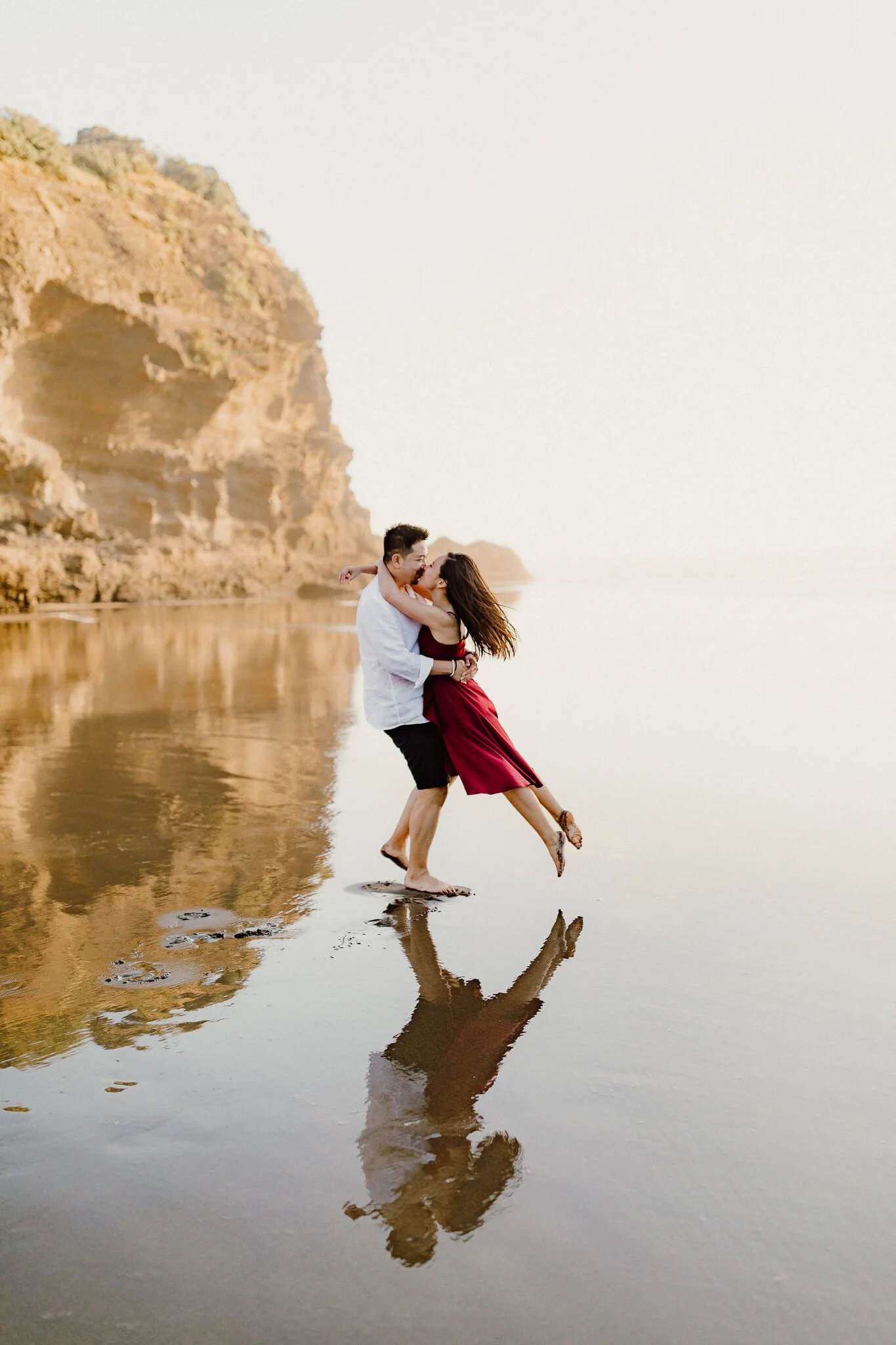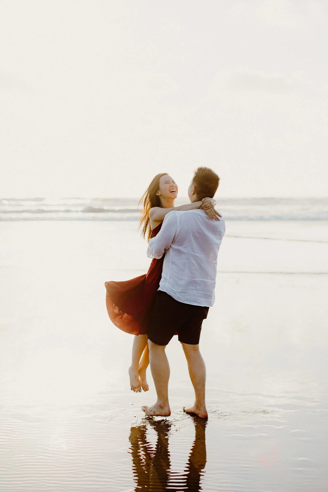 Golden hour photography portraits for Grace and Cedric's post wedding photography session at Te Henga beach, Auckland.