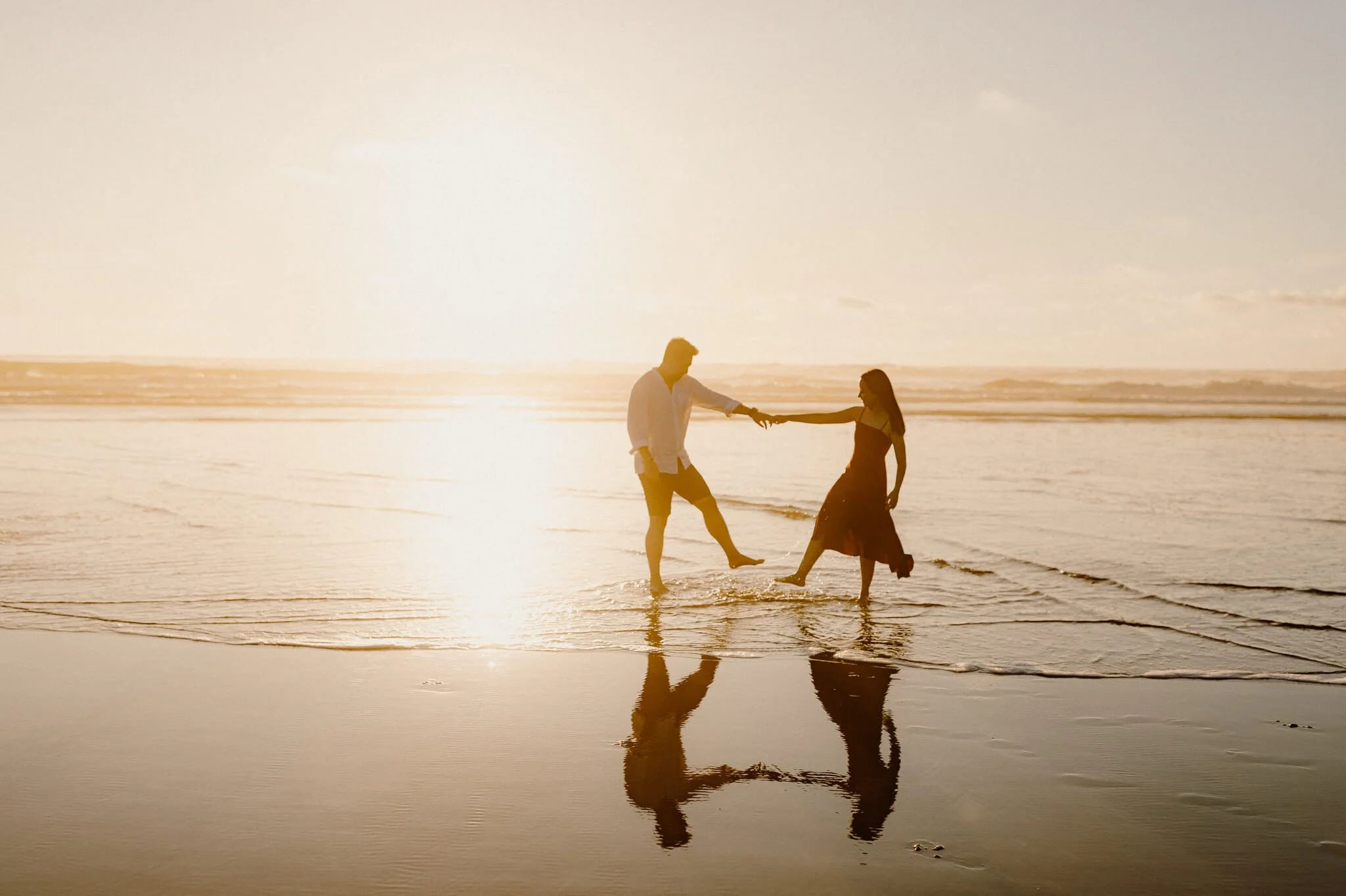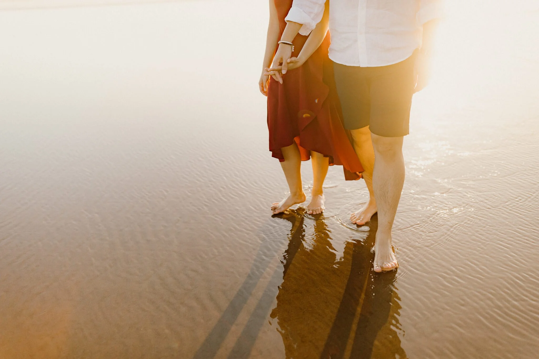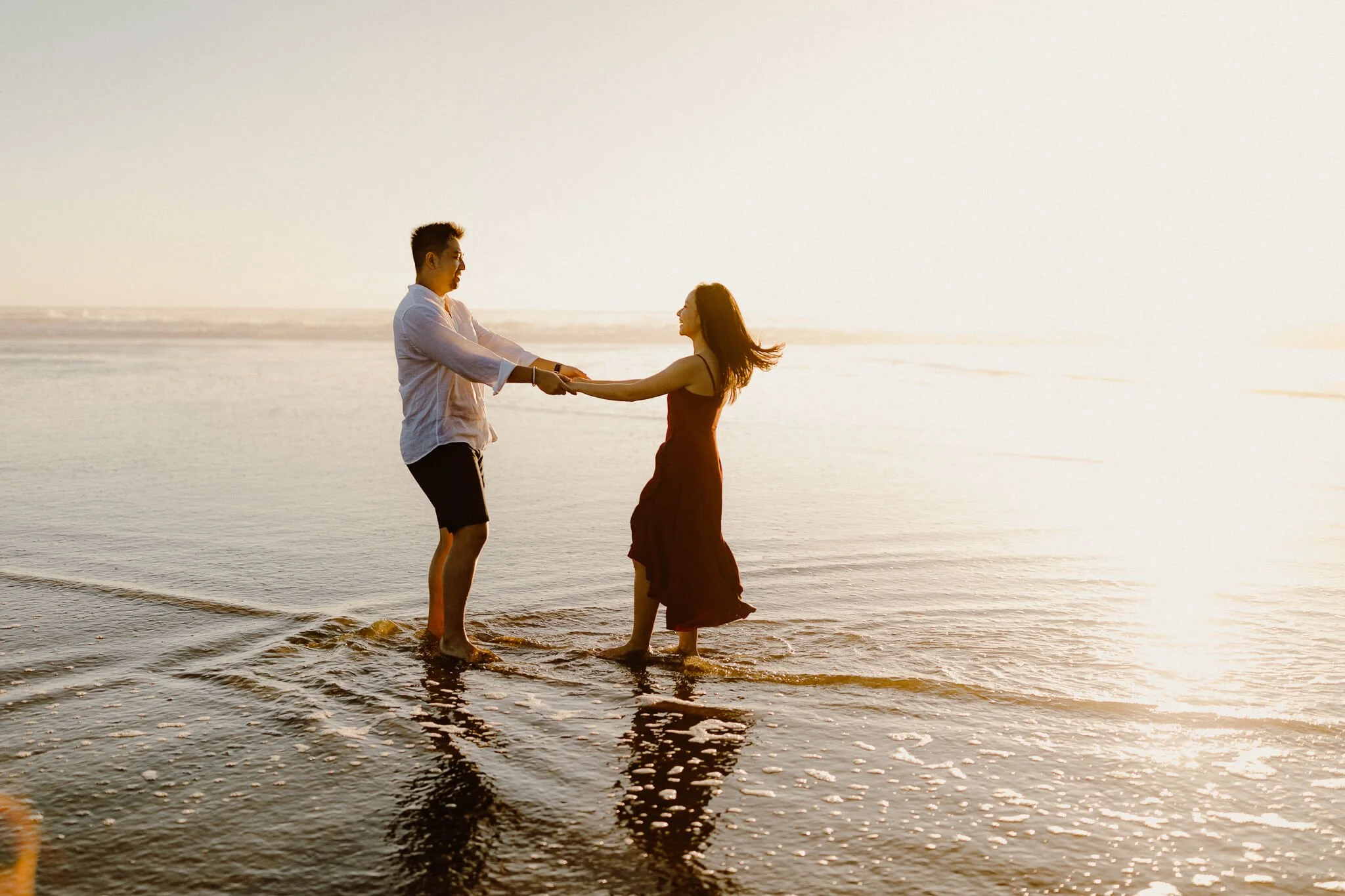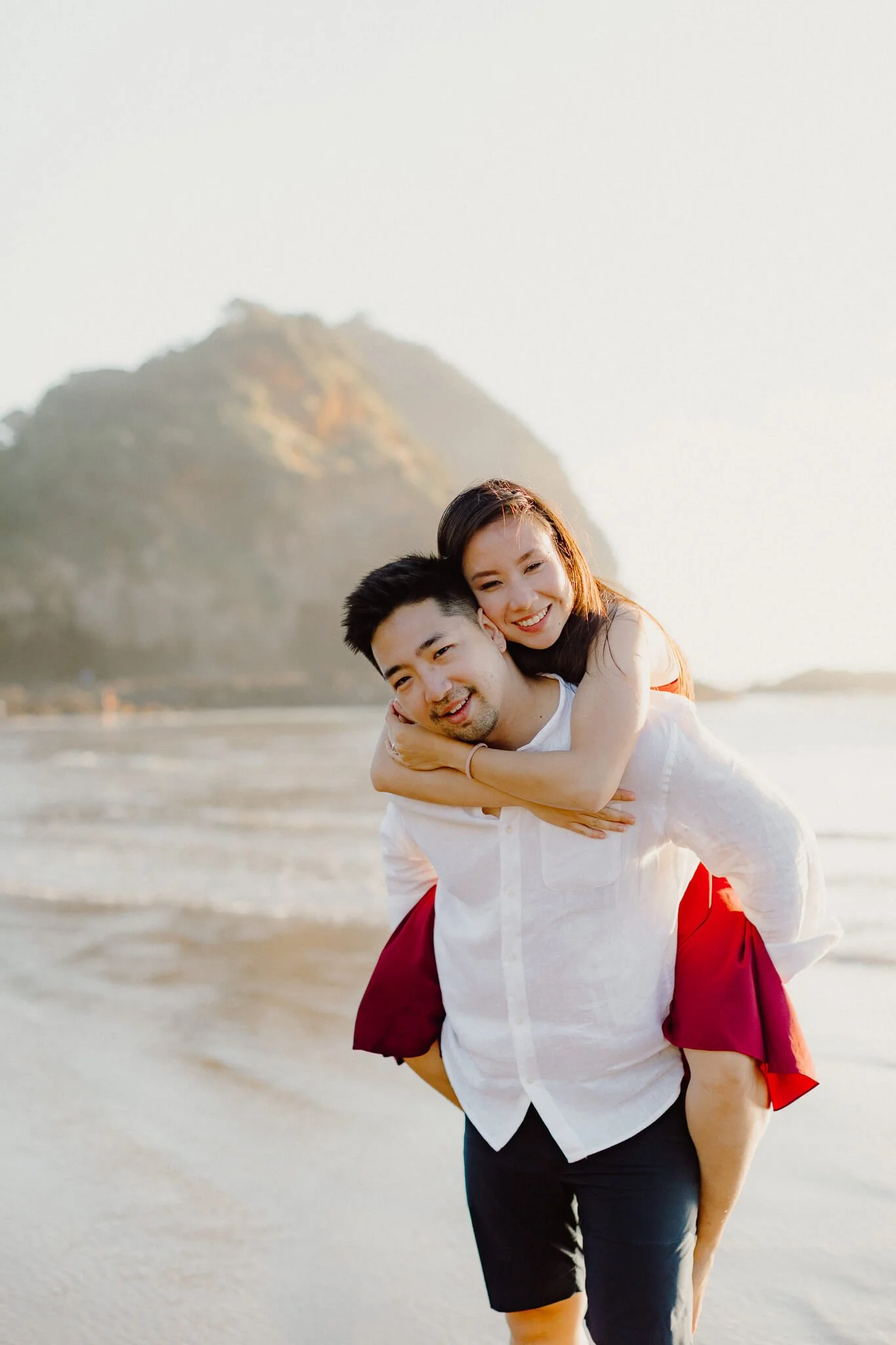 Golden hour photography portraits for Grace and Cedric's post wedding photography session at Te Henga beach, Auckland.